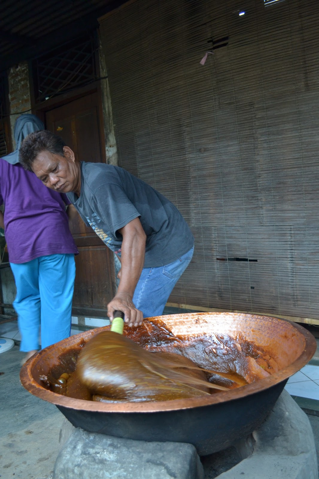 Setelah semuanya kenyang dan bahagia, kami berangkat ke tempat pembuatan dodol..Disini kami bisa nyobain dodol, LANGSUNG DARI WAJANNYA! XP jorok, but lezat :9 Aku yang biasanya gasuka dodol disini bisa makan dengan nikmat...Rasanya persis wajik, cuma teksturnya lembek. Enakan wajik kalo menurutku..hehehehe..Kalo mau beli bisa..Selonjor cuma Rp 10.000..Murah lah..daripada bikinnya? Gila banget! Harus diaduk selama 7 jam!!!! Nontstop!! -_-